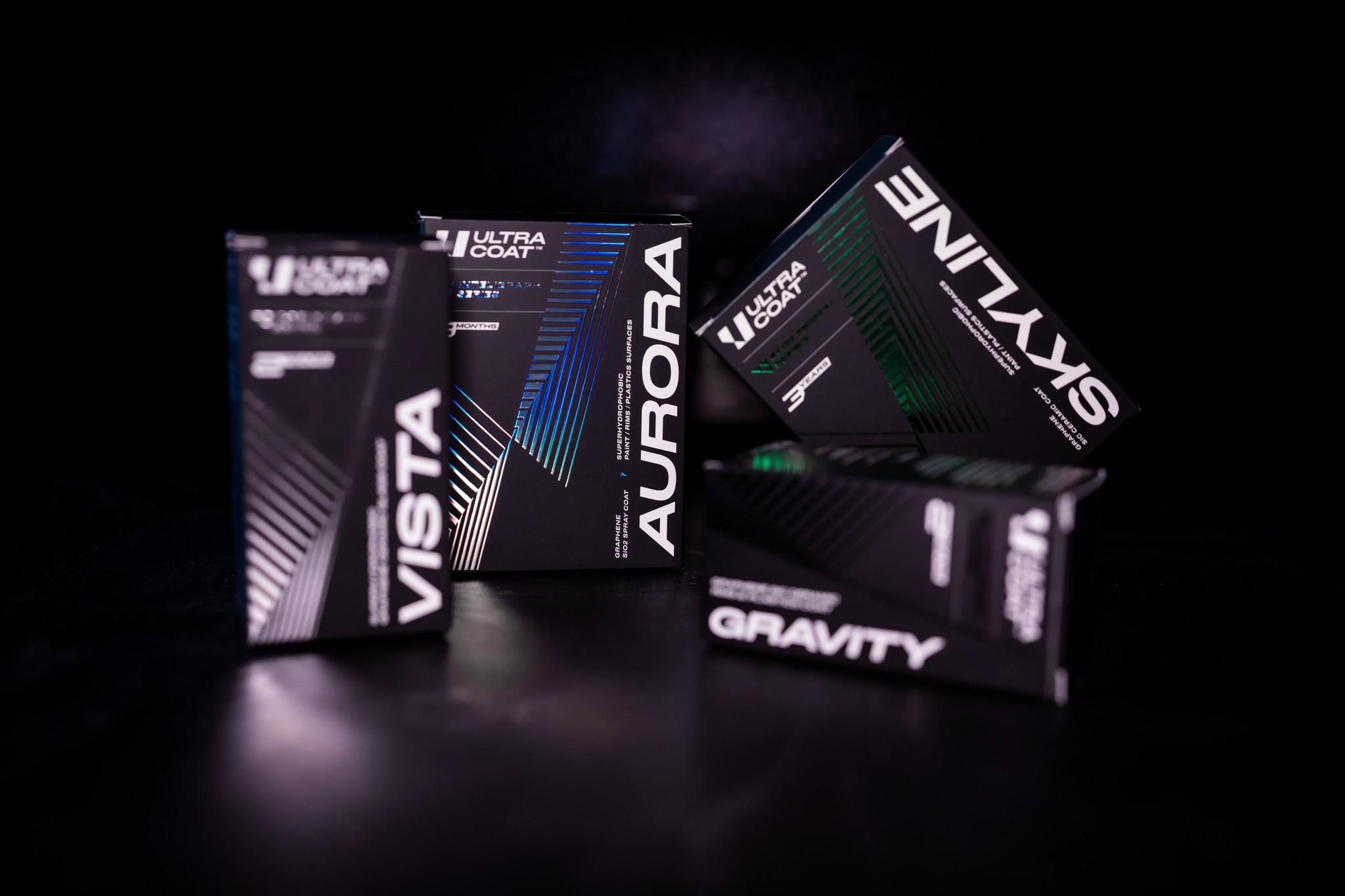 Aurora er et allsidig keramisk grafen-coating som egner seg for nesten alle utvendige overflater, som lakk, felger og plast. Det kan påføres som et selvstendig produkt eller som en topp coating, og gir lakkbeskyttelse i opptil 9 måneder. Med inkluderingen av grafenplater blir overflater belagt med Aurora ekstremt glatte og superhydrofobiske beskyttelse, noe som reduserer smussfesting betydelig.
