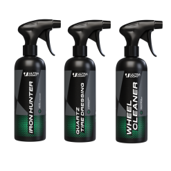 Komplett felgpakke med Magic Will, Iron Hunter og Quartz Tire Dressing. Rengjør, fjerner metallpartikler og beskytter dekk med langvarig glans.
