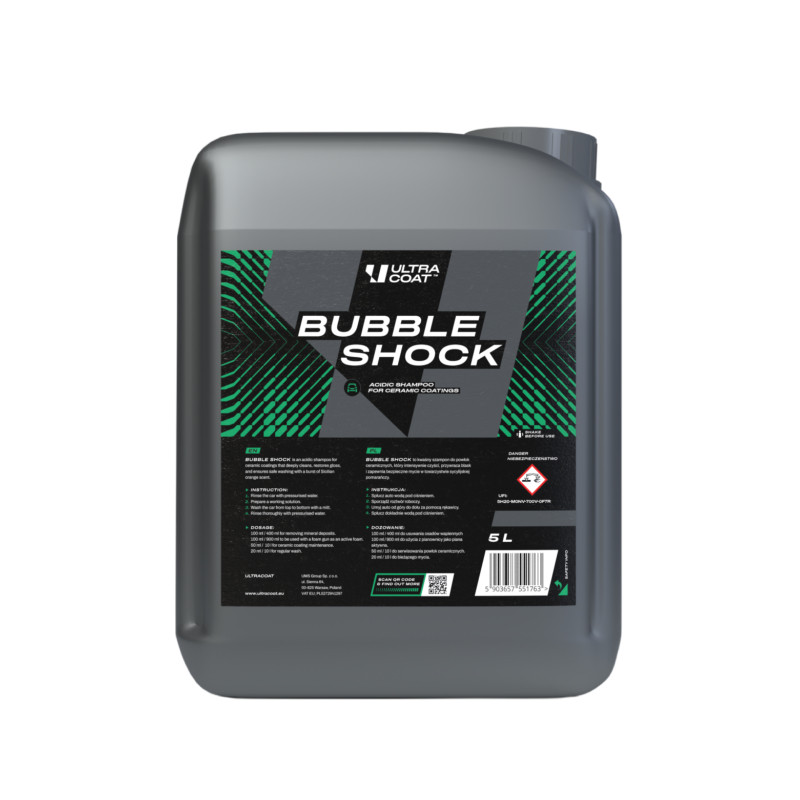 Produktet er utviklet på en slik måte at det er trygt å bruke Bubble Shock på behandlede biler, samt forbedre fjerningen av smuss og mineraler fra overflaten.